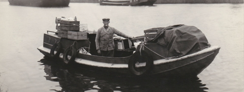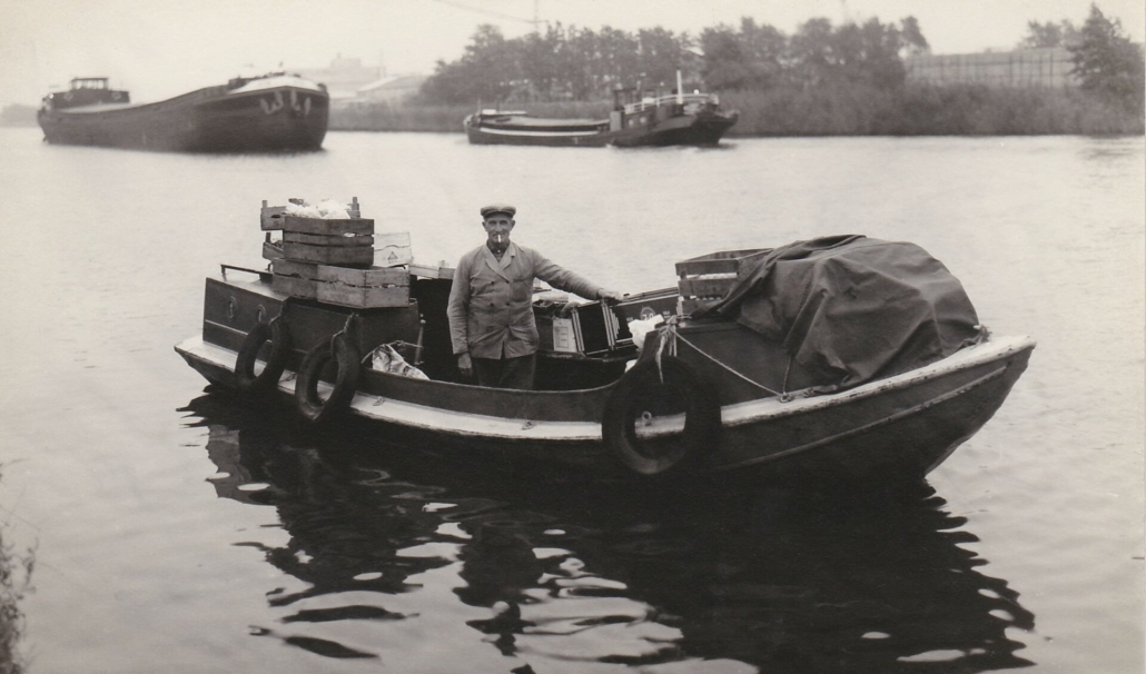 Parlevinker. Het drijvende warenhuis van de Rotterdammer Pieter Kooy in de Rotterdamse Rijnhaven. Foto 1928.